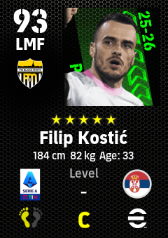 . Filip Kostić is a Left Midfielder footballer from Serbia who plays for Piemonte Bn in eFootball 2026.