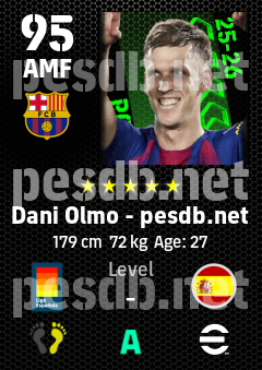 . Dani Olmo is a Attacking Midfielder footballer from Spain who plays for Fc Barcelona in eFootball 2026.