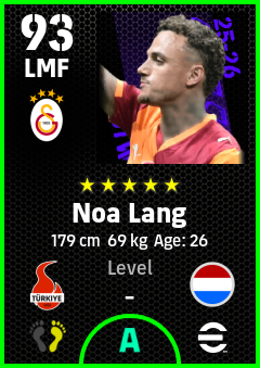. Noa Lang is a Left Midfielder footballer from Netherlands who plays for Galatasaray Sk in eFootball 2026.