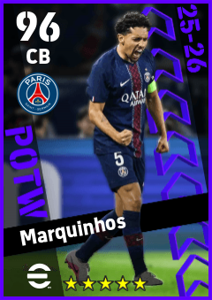 . Marquinhos is a Center Back footballer from Brazil who plays for Paris Saint-Germain in eFootball 2026.