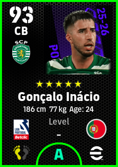 . Gonçalo Inácio is a Center Back footballer from Portugal who plays for Sporting Cp in eFootball 2026.
