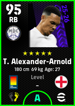 . T. Alexander-Arnold is a Right Back footballer from England who plays for Madrid Chamartin B in eFootball 2026.
