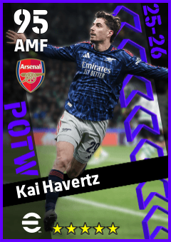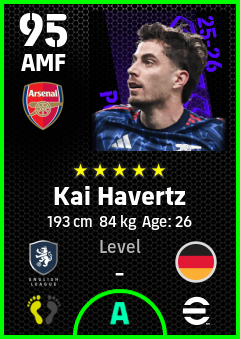. Kai Havertz is a Attacking Midfielder footballer from Germany who plays for Arsenal Fc in eFootball 2026.