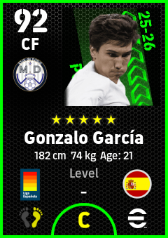 . Gonzalo García is a Center Forward footballer from Spain who plays for Madrid Chamartin B in eFootball 2026.