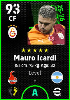 . Mauro Icardi is a Center Forward footballer from Argentina who plays for Galatasaray Sk in eFootball 2026.