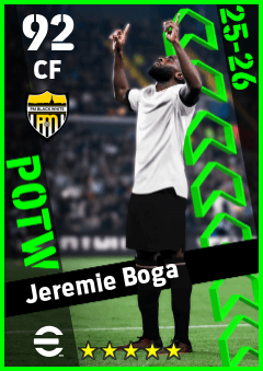 . Jeremie Boga is a Center Forward footballer from Côte D'ivoire who plays for Piemonte Bn in eFootball 2026.