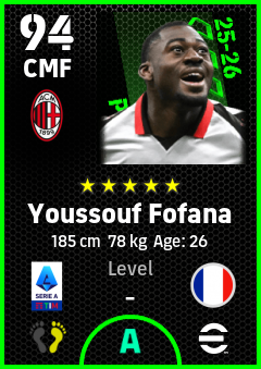 . Youssouf Fofana is a Center Midfielder footballer from France who plays for Ac Milan in eFootball 2026.