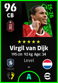 . Virgil Van Dijk is a Center Back footballer from Netherlands who plays for Liverpool R in eFootball 2026.