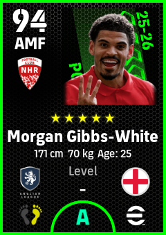 . Morgan Gibbs-White is a Attacking Midfielder footballer from England who plays for Nottingham Rw in eFootball 2026.
