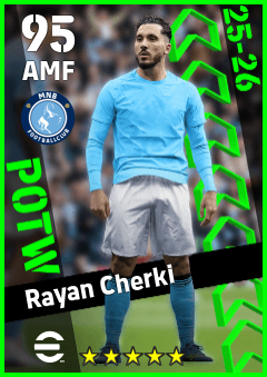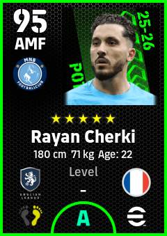 . Rayan Cherki is a Attacking Midfielder footballer from France who plays for Manchester B in eFootball 2026.