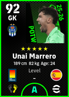 . Unai Marrero is a Goalkeeper footballer from Spain who plays for Vasco Gipuzkoa Ab in eFootball 2026.