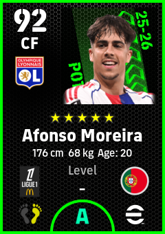 . Afonso Moreira is a Center Forward footballer from Portugal who plays for Olympique Lyonnais in eFootball 2026.