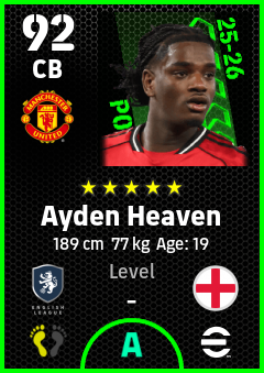 . Ayden Heaven is a Center Back footballer from England who plays for Manchester United in eFootball 2026.