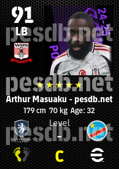 . Arthur Masuaku is a Left Back footballer from Congo Dr who plays for Sunderland Rwb in eFootball 2026.