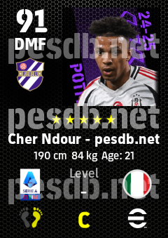 . Cher Ndour is a Defensive Midfielder footballer from Italy who plays for Firenze V in eFootball 2026.