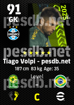 . Tiago Volpi is a Goalkeeper footballer from Brazil who plays for Grêmio Fbpa in eFootball 2026.