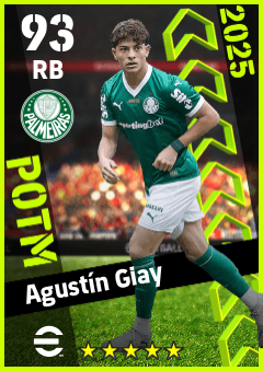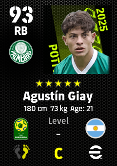 . Agustín Giay is a Right Back footballer from Argentina who plays for Se Palmeiras in eFootball 2026.