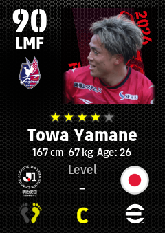 . Towa Yamane is a Left Midfielder footballer from Japan who plays for Fagiano Okayama in eFootball 2026.