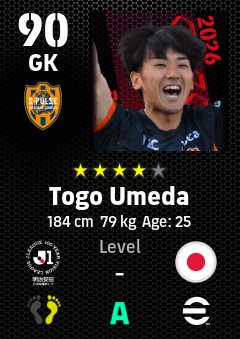 . Togo Umeda is a Goalkeeper footballer from Japan who plays for Shimizu S-Pulse in eFootball 2026.