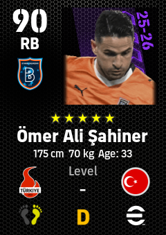 . Ömer Ali Şahiner is a Right Back footballer from Türkiye who plays for Rams Başakşehir Fk in eFootball 2026.