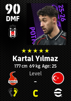 . Kartal Yılmaz is a Defensive Midfielder footballer from Türkiye who plays for Beşiktaş Jk in eFootball 2026.