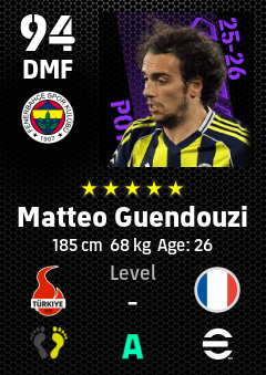 . Matteo Guendouzi is a Defensive Midfielder footballer from France who plays for Fenerbahçe Sk in eFootball 2026.
