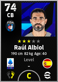 . Raúl Albiol is a Center Back footballer from Spain who plays for Pisa Sporting Club in eFootball 2026.