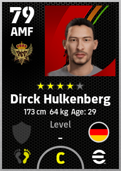 . Dirck Hulkenberg is a Attacking Midfielder footballer from Germany who plays for Pes United in eFootball 2026.