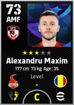 . Alexandru Maxim is a Attacking Midfielder footballer from Romania who plays for Gaziantep Fk in eFootball 2026.