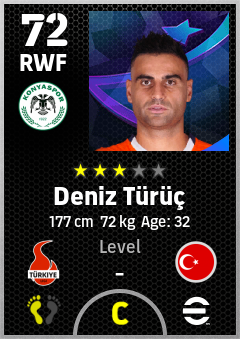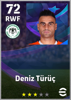 . Deniz Türüç is a Right Wing Forward footballer from Türkiye who plays for Konyaspor in eFootball 2026.
