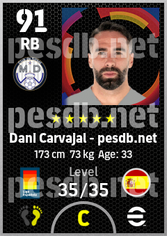 . Dani Carvajal is a Right Back footballer from Spain who plays for Madrid Chamartin B in eFootball 2026.