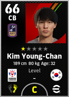 . Kim Young-Chan is a Center Back footballer from Korea Republic who plays for Anyang P in eFootball 2026.