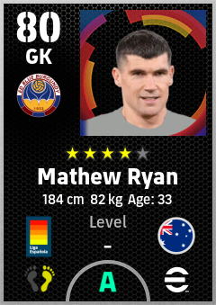 . Mathew Ryan is a Goalkeeper footballer from Australia who plays for Levante Ra in eFootball 2026.