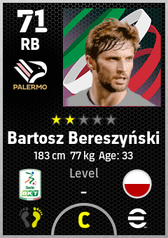 . Bartosz Bereszyński is a Right Back footballer from Poland who plays for Palermo Rn in eFootball 2026.