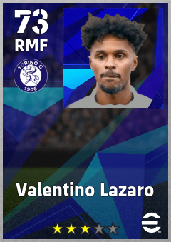 . Valentino Lazaro is a Right Midfielder footballer from Austria who plays for Torino Fc in eFootball 2026.