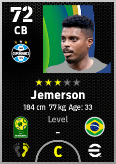 . Jemerson is a Center Back footballer from Brazil who plays for Grêmio Fbpa in eFootball 2026.