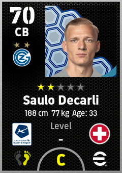 . Saulo Decarli is a Center Back footballer from Switzerland who plays for Zürich Bw in eFootball 2026.