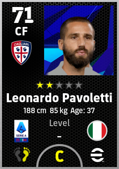 . Leonardo Pavoletti is a Center Forward footballer from Italy who plays for Cagliari Rb in eFootball 2026.
