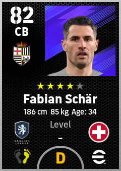 . Fabian Schär is a Center Back footballer from Switzerland who plays for Newcastle Wb in eFootball 2026.