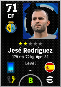 . Jesé Rodríguez is a Center Forward footballer from Spain who plays for Las Palmas Aa in eFootball 2026.