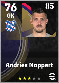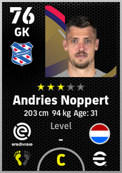 . Andries Noppert is a Goalkeeper footballer from Netherlands who plays for Sc Heerenveen in eFootball 2026.