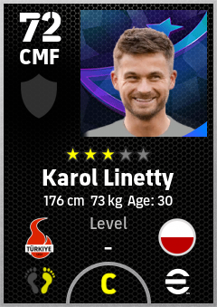. Karol Linetty is a Center Midfielder footballer from Poland who plays for Kocaelispor in eFootball 2026.