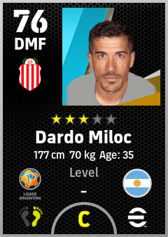 . Dardo Miloc is a Defensive Midfielder footballer from Argentina who plays for Barracas Rb in eFootball 2026.