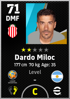 . Dardo Miloc is a Defensive Midfielder footballer from Argentina who plays for Barracas Rb in eFootball 2026.
