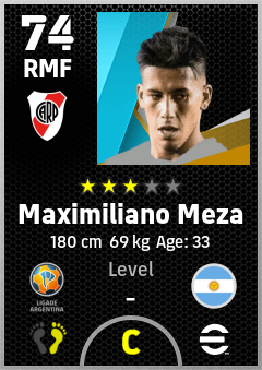 . Maximiliano Meza is a Right Midfielder footballer from Argentina who plays for Ca River Plate in eFootball 2026.