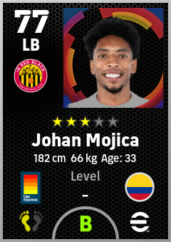 . Johan Mojica is a Left Back footballer from Colombia who plays for Mallorca Rn in eFootball 2026.