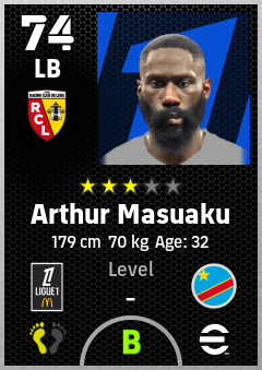. Arthur Masuaku is a Left Back footballer from Congo Dr who plays for Rc Lens in eFootball 2026.
