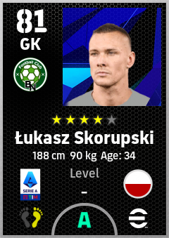 . Łukasz Skorupski is a Goalkeeper footballer from Poland who plays for Bologna Rb in eFootball 2026.