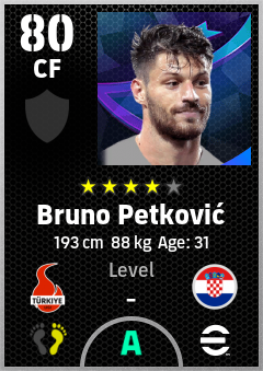 . Bruno Petković is a Center Forward footballer from Croatia who plays for Kocaelispor in eFootball 2026.