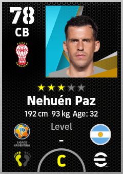 . Nehuén Paz is a Center Back footballer from Argentina who plays for Parque Patricios R in eFootball 2026.